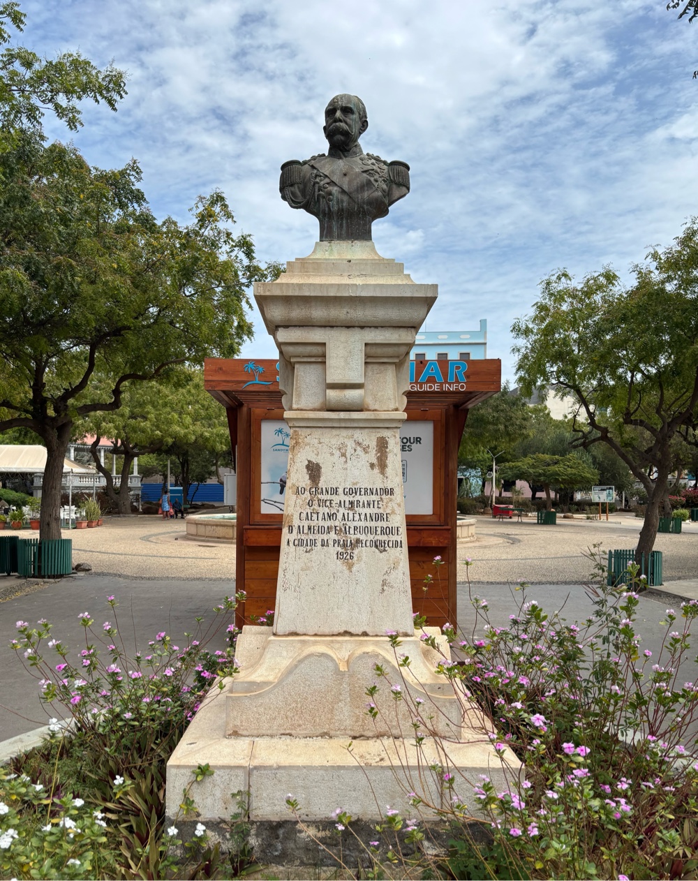 | | Two colonial (Portuguese) busts can be found in the park, paying homage to an 18th a 19th century figures who played a key role in Cabo Verde. Surprisingly, these busts have not been dismantled, as such colonial souvenirs have been in Canada. |