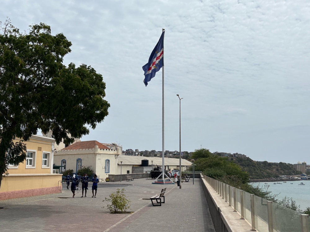 | | The huge Cabo Verde flag that we saw coming from the airport two days ago sits just outside the Presidential Palace. |