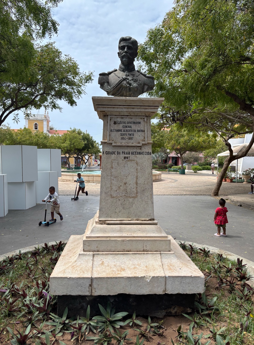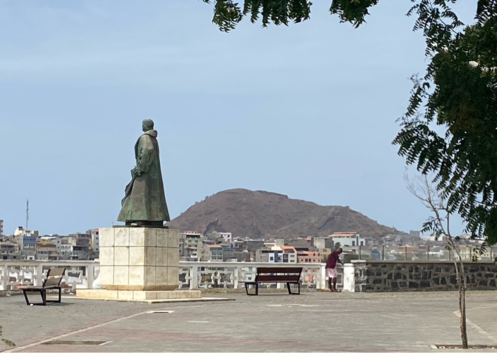 | | Cabo Verde is proud of its poets, as evidenced by the bust of this poet in Plato. |