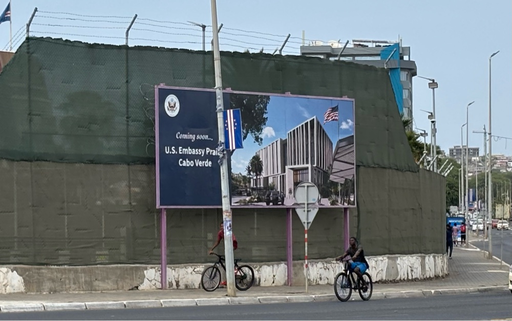 | | Arriving back in Praia via another packed ‘aluguer’, we saw the future site of the American embassy. |