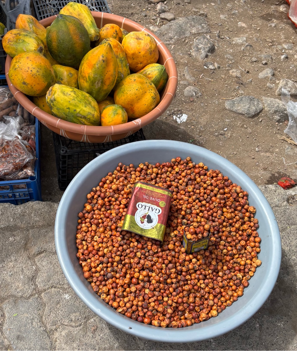 | Papaya and dried Cape Gooseberries - both are very common in Cabo Verde markets. |