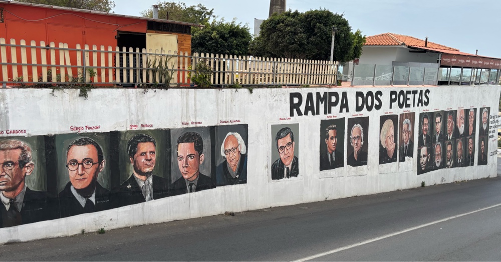 | | The roadway up to Plato has this series of street art portraits of the country’s best-known poets. More evidence of how revered poets are here. |