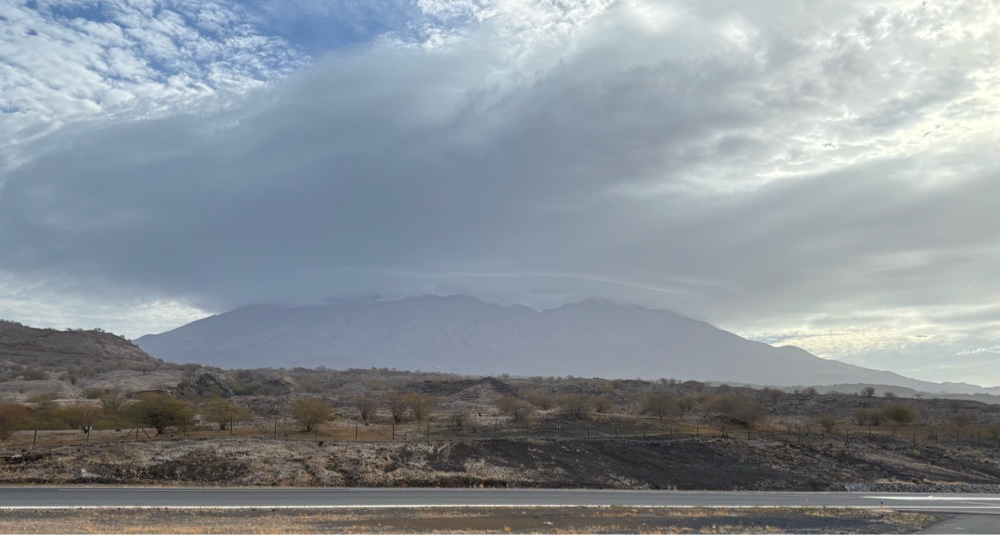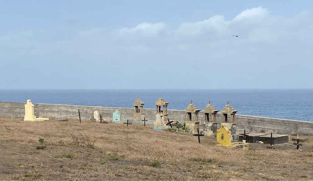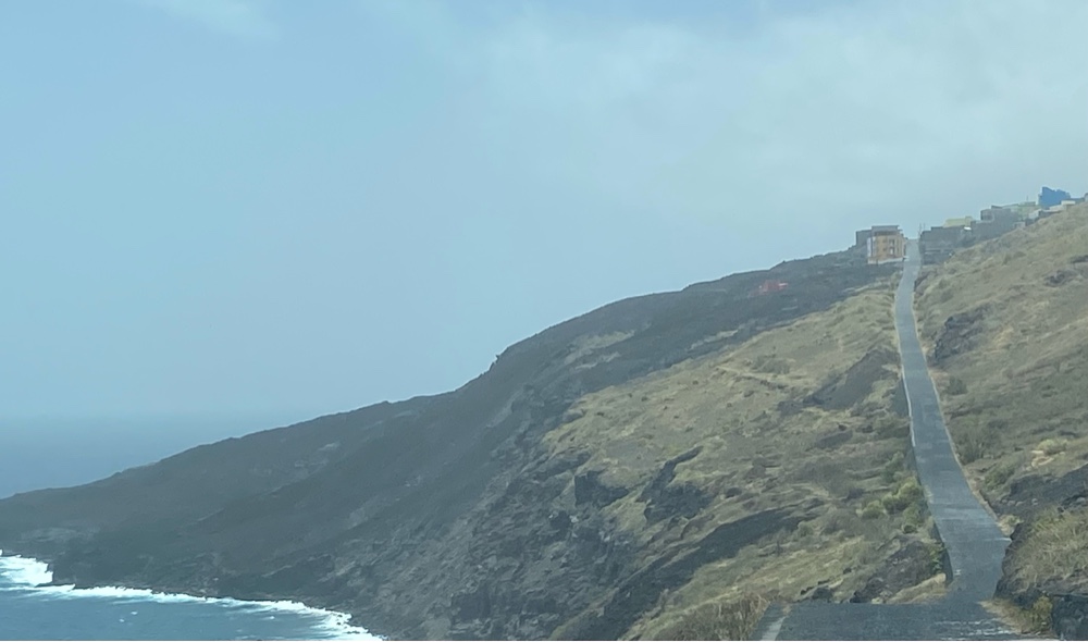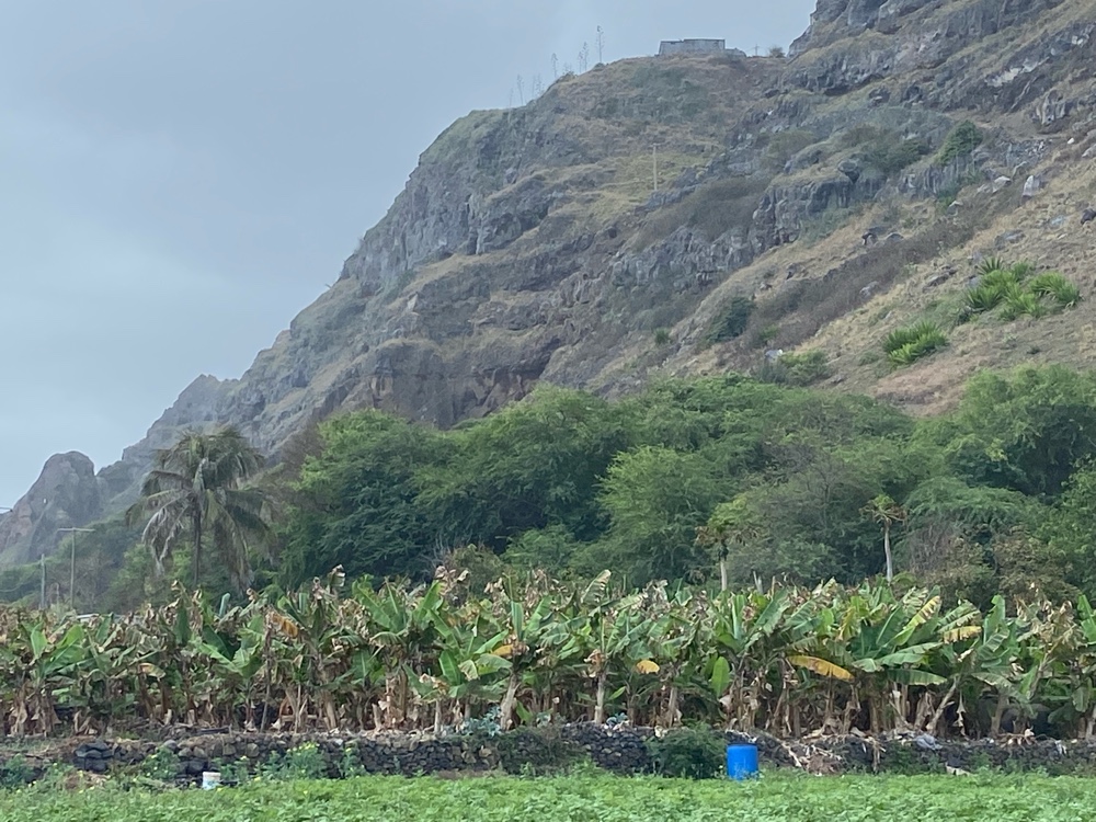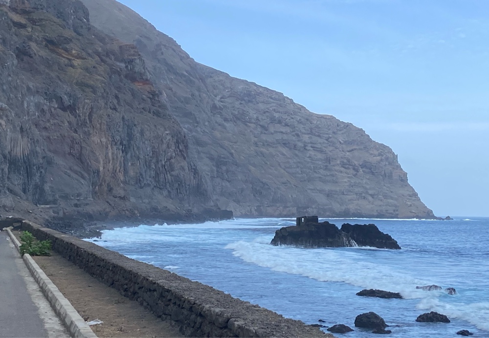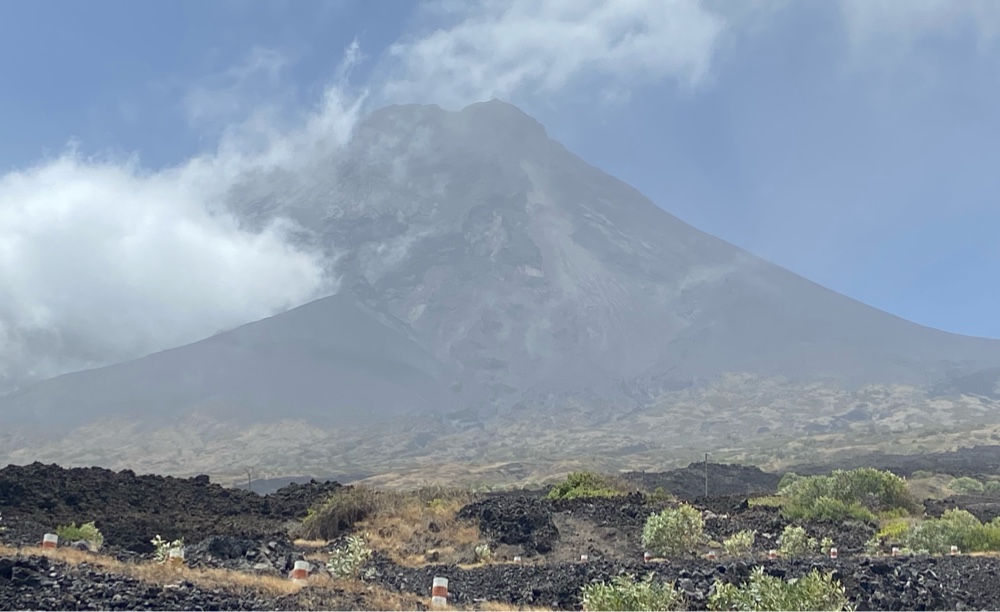This is the day we changed islands, from Santiago Island to Fogo Island. It was a 5:30 AM rise, in order to meet our prearranged taxi at 6:30 AM. The flight over to Fogo is just 30 minutes, but there are very few interisland flights, and they usually sell out. When we arrived at Nelson Mandela International Airport, the lineup to check in for our flight was long and tediously slow. And they have some of the most meticulous security screening procedures I’ve ever seen! All that to say, there was no time to spare. We pushed back at 7:50 AM and were on the ground in Fogo by 8:20. The rental car company had sent a representative to the tiny Fogo airport to meet us and drive us into Sao Filipe (the main town), where we organized the rental car paperwork. We got some money out of the bank, topped up our SIM card data, and at 9:30 AM set out to drive around the island.