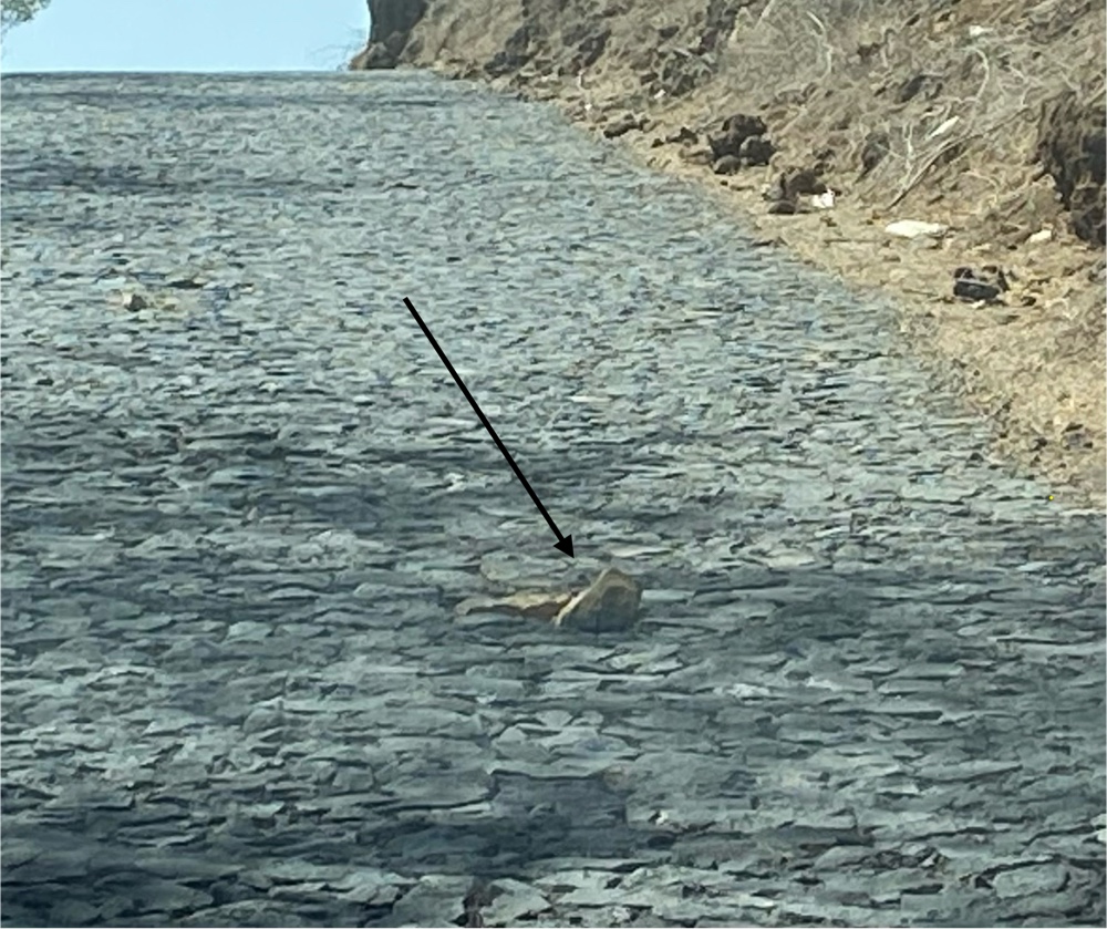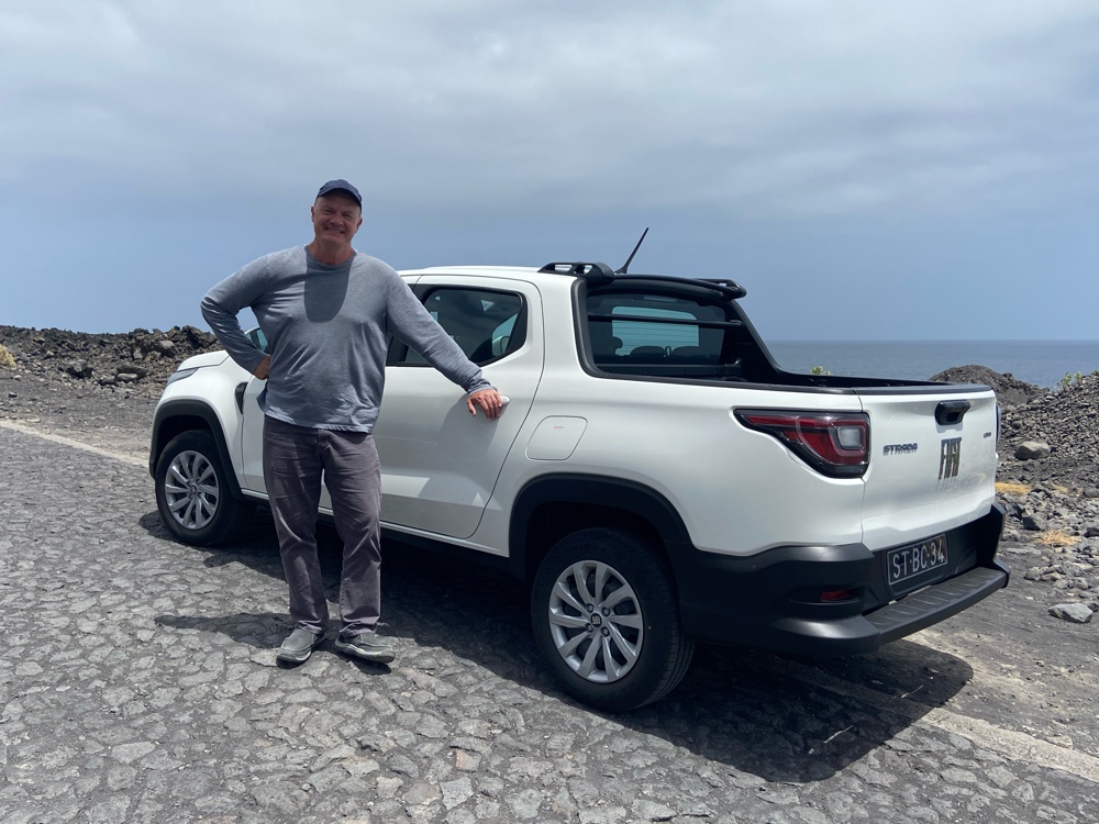 | The road that goes along the edge of Fogo’s coastline is 82km long. Most of it is comprised of cobblestones, and we were told that every cobblestone was hand laid. It all represents an incredible testament to human endurance. However, one has to be careful for loose stones, such as the one in the photo, which can destroy a tire in an instant.