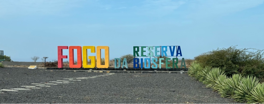 A sign near the airport reads, “Fogo da Reserva Biosfera” (Fogo Biosphere Reserve).