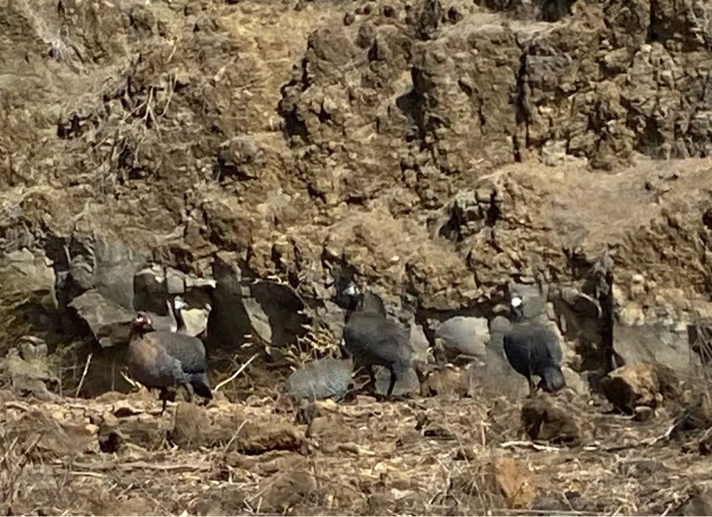 | | A flock of roadside pea hens enroute to the Chapel of Our Lady of Socorro. |