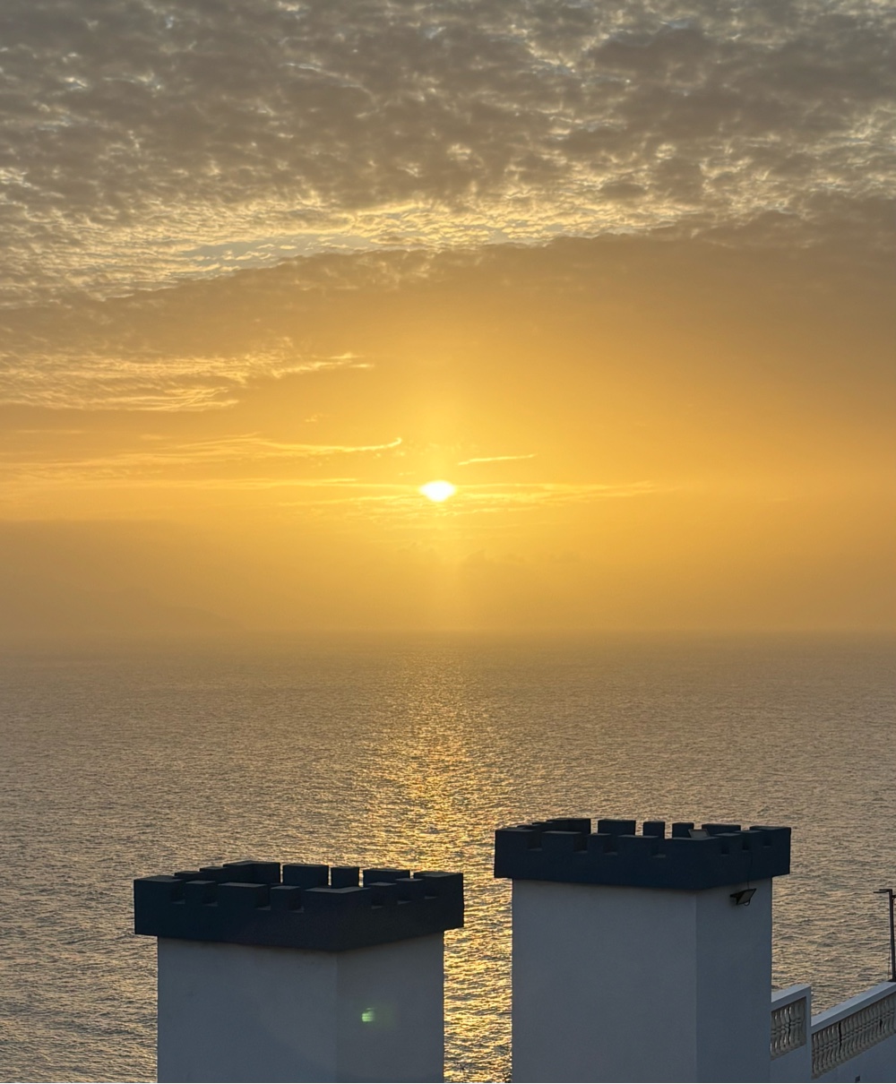 | | The sun is about to set over the neighbouring island of Brava, rounding out a wonderful first day on Fogo. |