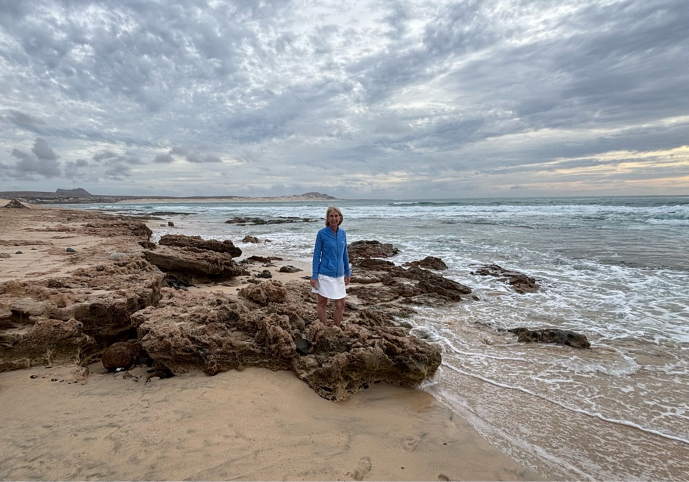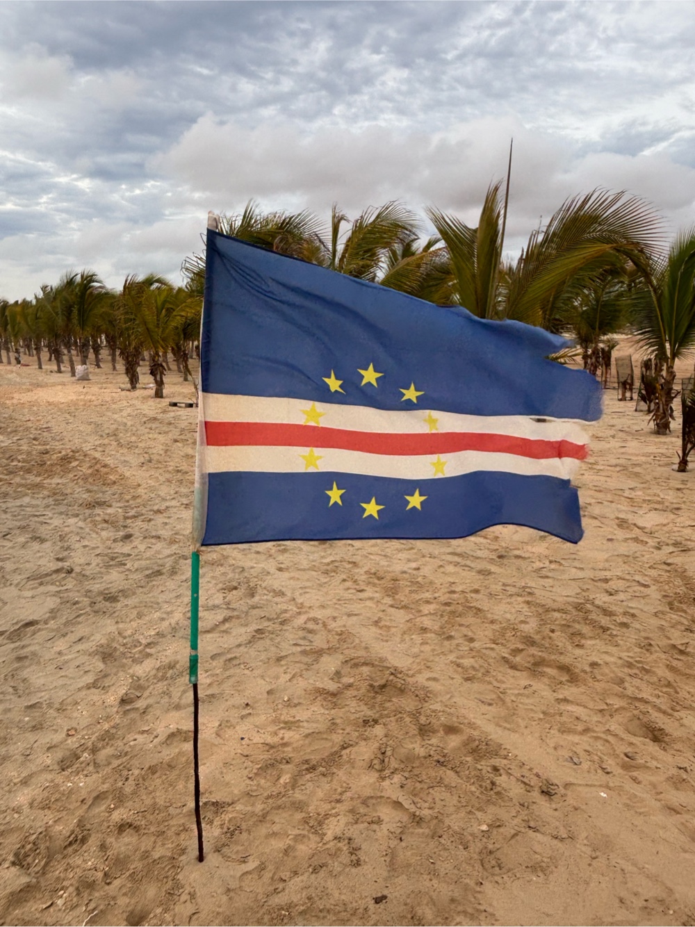 | The flag of Cabo Verde, which was adopted following independence from Portugal in 1975, flying proudly on Dunas Beach. |