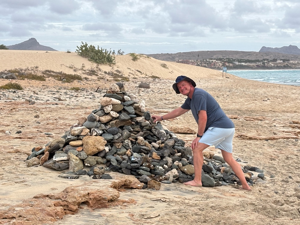 | This rock cairn has been built by hotel guests. It seems like everyone leaves a stone. I added one for us! |
