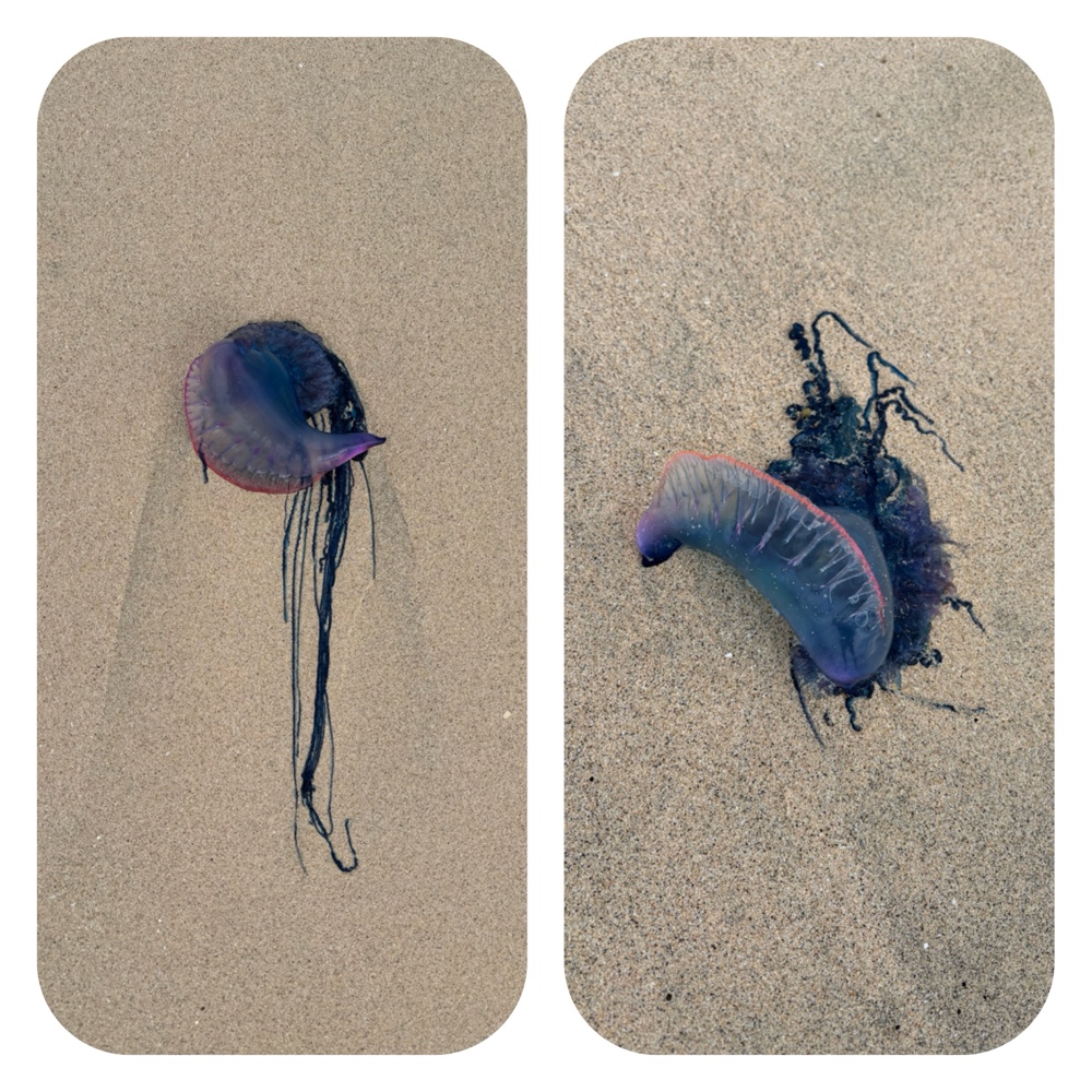 | Blue bottle jelly fish. The stingers are poisonous, we are told. |
