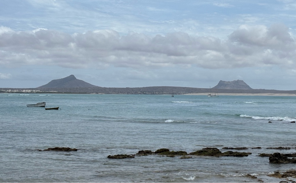 | Monte Santo Antonio (left) and Rocha Estancia (right) are two of the highest peaks on Boa Vsta. As seen from Sal Rei. |