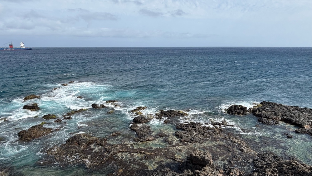 The shallow waters and lava stone of Ponta Temerosa, the name of the point where the lighthouse is located.