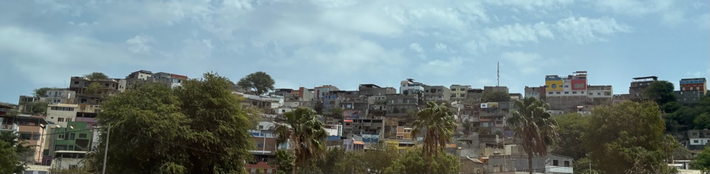 Praia has many hills. These are typical apartment buildings, as seen on the cliffs of the Grande Frent neighbourhood.