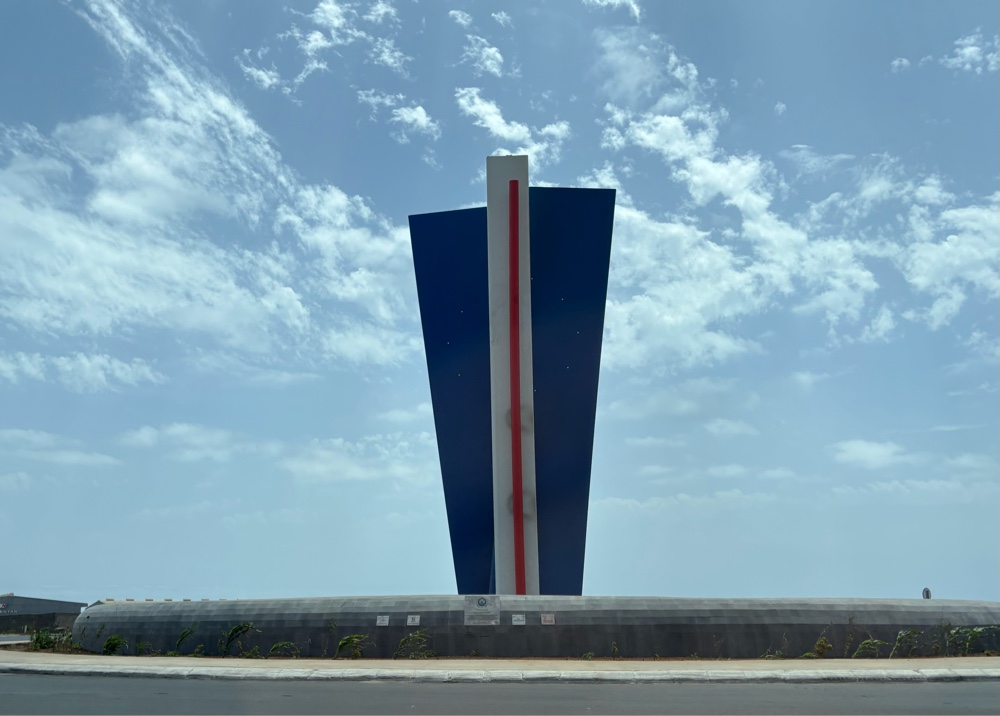 Enroute from the airport into the city, one passes the Democracy Monument, which shows the colours of the Cabo Verde flag. The blue panels represent sea and sky; the two white panels represent peace and liberty; and the rad panel represents the blood of sacrifice. This flag was adopted after the country gained independence from Portugal in 1975.