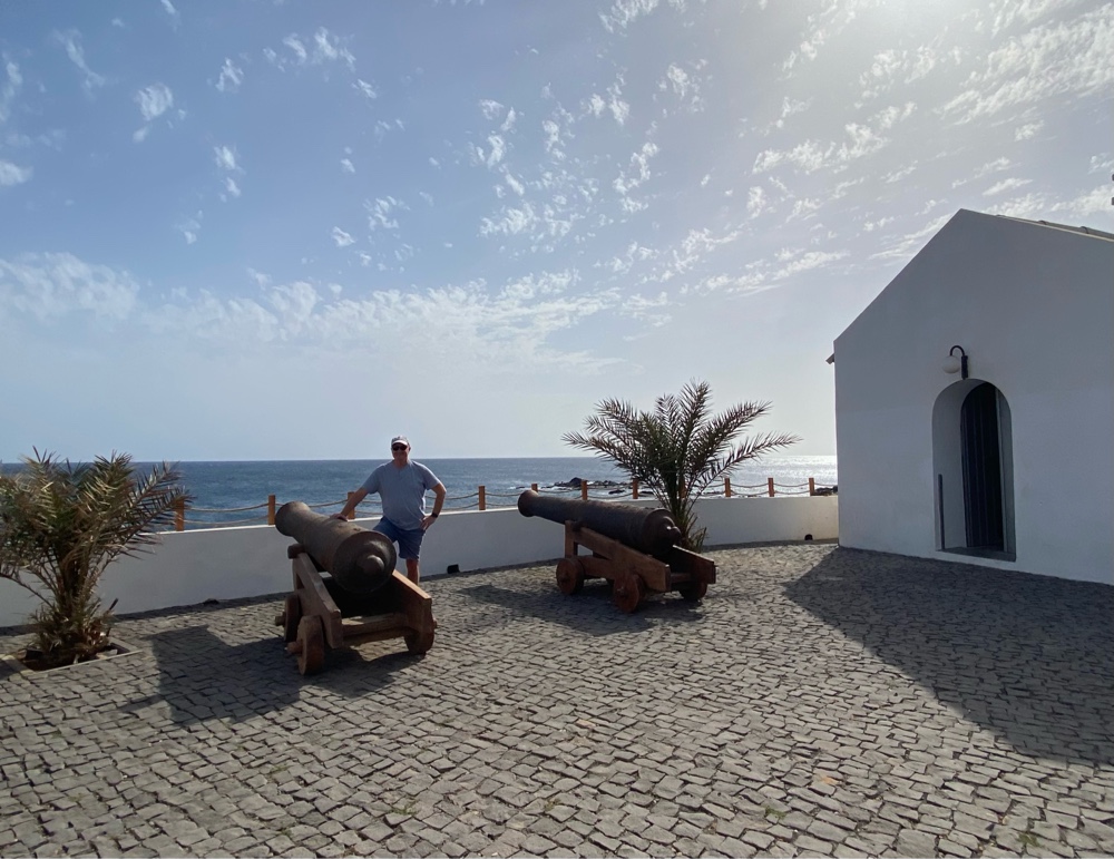 Canon at the lighthouse. Most the canon that defended the port of Praia were taken from shipwrecks. Although the port was a welcome and safe haven, during the rainy months of August to October, it proved a treacherous port to access, as it was exposed to strong winds from the south and southeast. As a result, 20 ships were wrecked just outside the port from the 17th to 20th centuries,